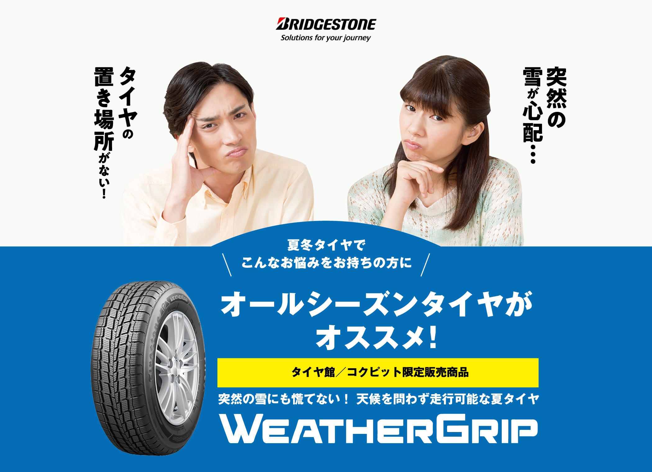 タイヤ館交野ではオールシーズンタイヤも取り扱いしております! 【ファイアストン・ウェザーグリップ】 スタッドレスまでは… 履き替えるのが面倒… と言った方におすすめさせて頂きます^_^ 是非、1度履いて見てはいかがでしょうか? 詳しくは専用サイトをご覧下さい!