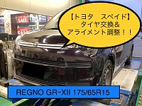 【トヨタ スペイド】タイヤ交換&アライメント調整 &エアコン洗浄!! REGNO GRーXⅡ 175/65R15