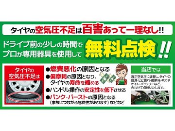 記事一覧 お出かけ前にタイヤ点検を☆ 皆様、もうすぐ待ちに待ったGWですね! お車でお出かけやドライブをされる方も多いと思いますが、 知らない道での運転や、高速道路での長距離運転が少し心配・・・ という方はお車の安全点検を事前に済ませておきましょう! 特に重要なのがタイヤの溝・ひび割れ・空気圧。他にもエンジンオイルの量... 2026年4月28日 ポスト