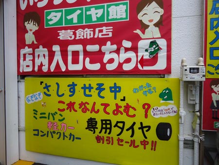[夏の集中得市」セール開催中! ポスト 2015年6月28日 今日はお店のいろいろ。お店の入口にある「なぞなぞ」「さ・し・す・せ・そ 中」これなんて読む?の答えは、 「 作業中 」 (サ行中→作業中)ピットは作業中で危険がいっぱいだから入らないでね!という注意の看板でした。(^O^)愛煙家の方、入口入って奥に喫煙所ありますよー!(´ー`)y-~~お体の為に、吸いすぎないでネ!