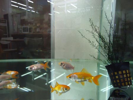 店内水槽に金魚の赤ちゃんたちがお引越し!(^O^)