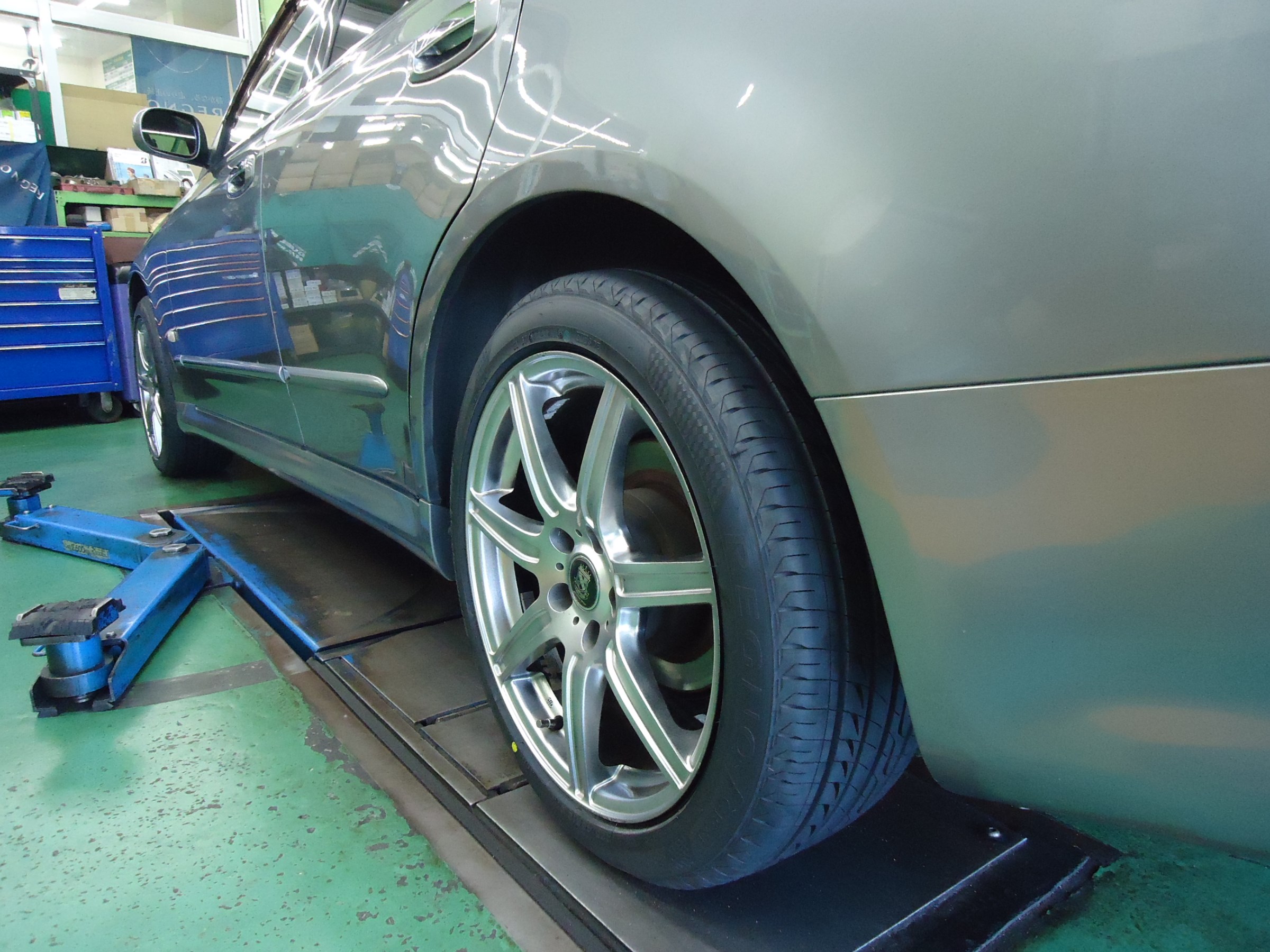 タイヤの内側が減っていたのでお車の骨盤矯正「アライメント調整」もさせて頂きました。