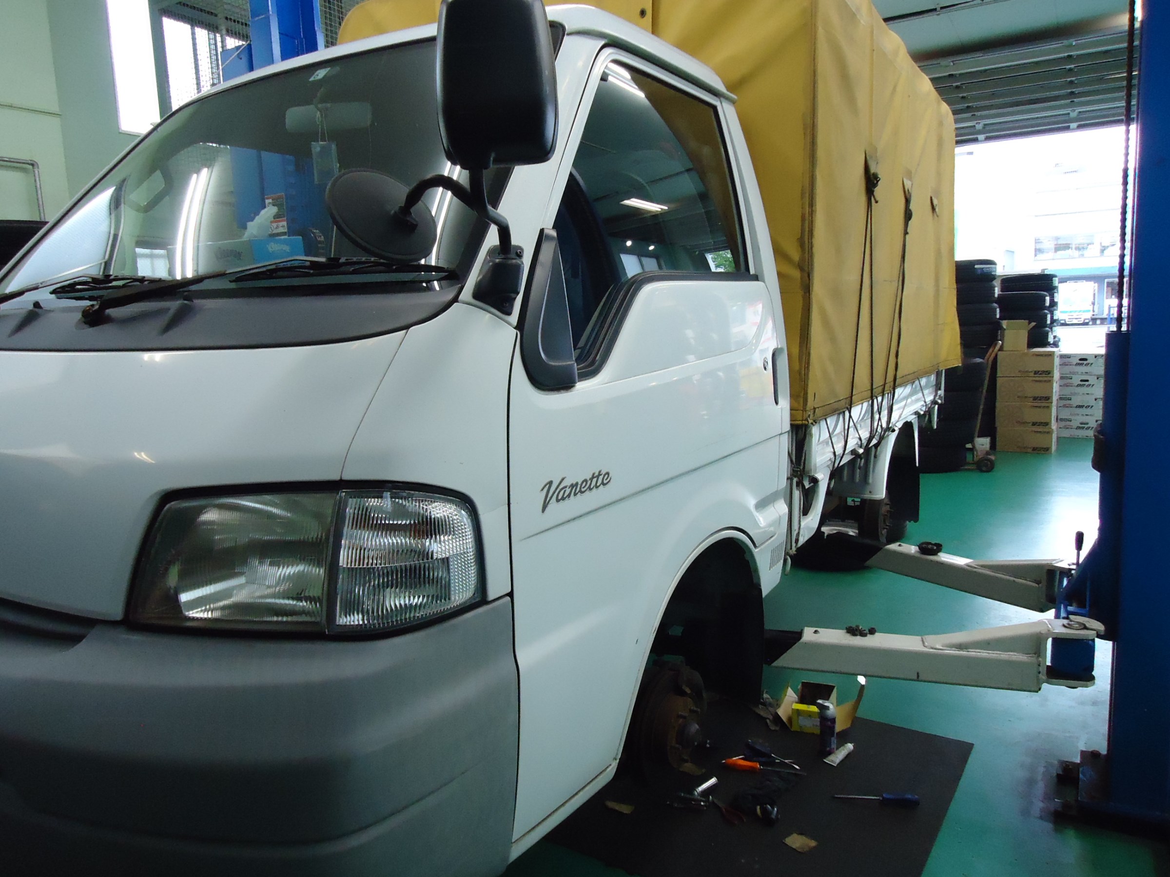働くクルマの車検! ポスト 2018年6月18日 働くクルマの車検です。 本日のお車は日産バネット。 オイル交換やリヤのブレーキシュー、足廻りのブッシュ交換などなど。 これでまたバリバリお仕事!?(笑) 担当:大谷