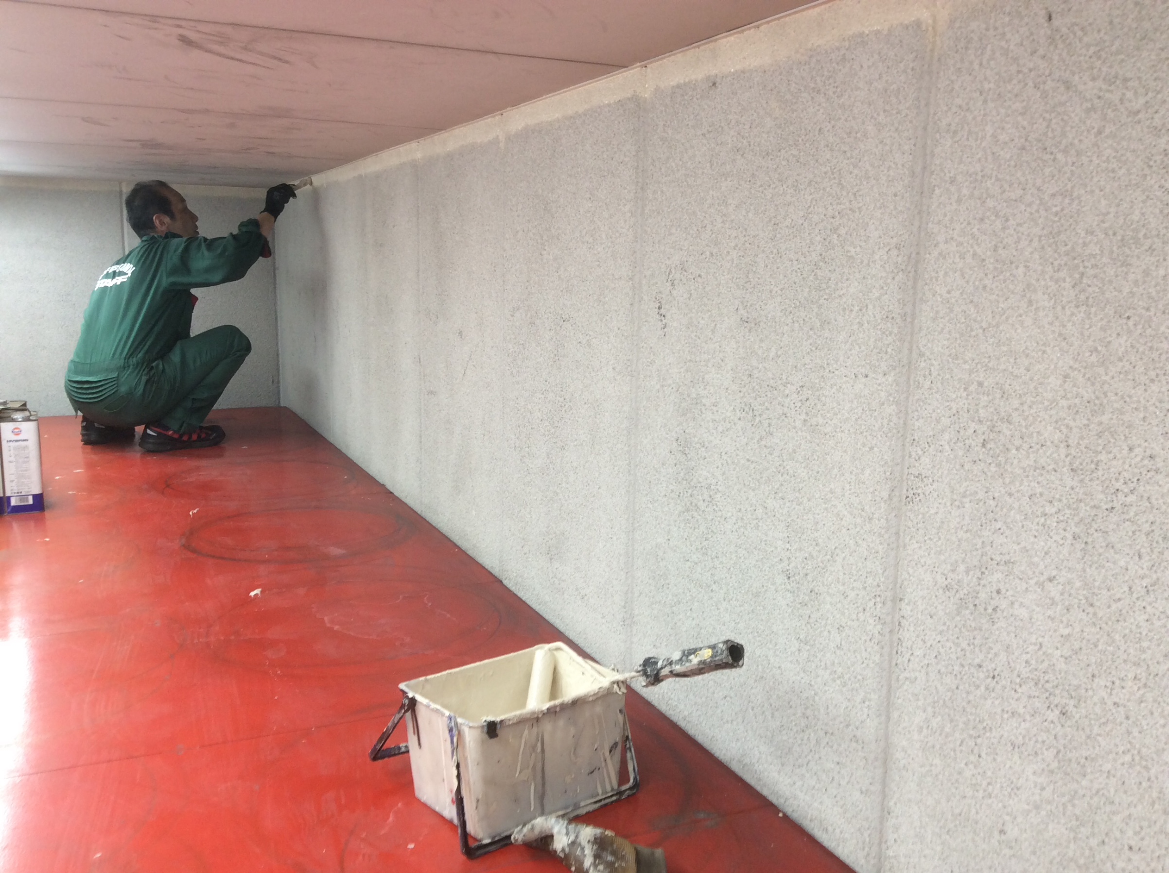 閉店後、キャットウオークの壁を塗りました。
