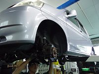 本日は個人タクシー様の定期点検です。 ブレーキはキャリパーを外し入念に点検。 個人タクシー様は車検の他に3ヶ月に一度点検整備を義務付けられています。