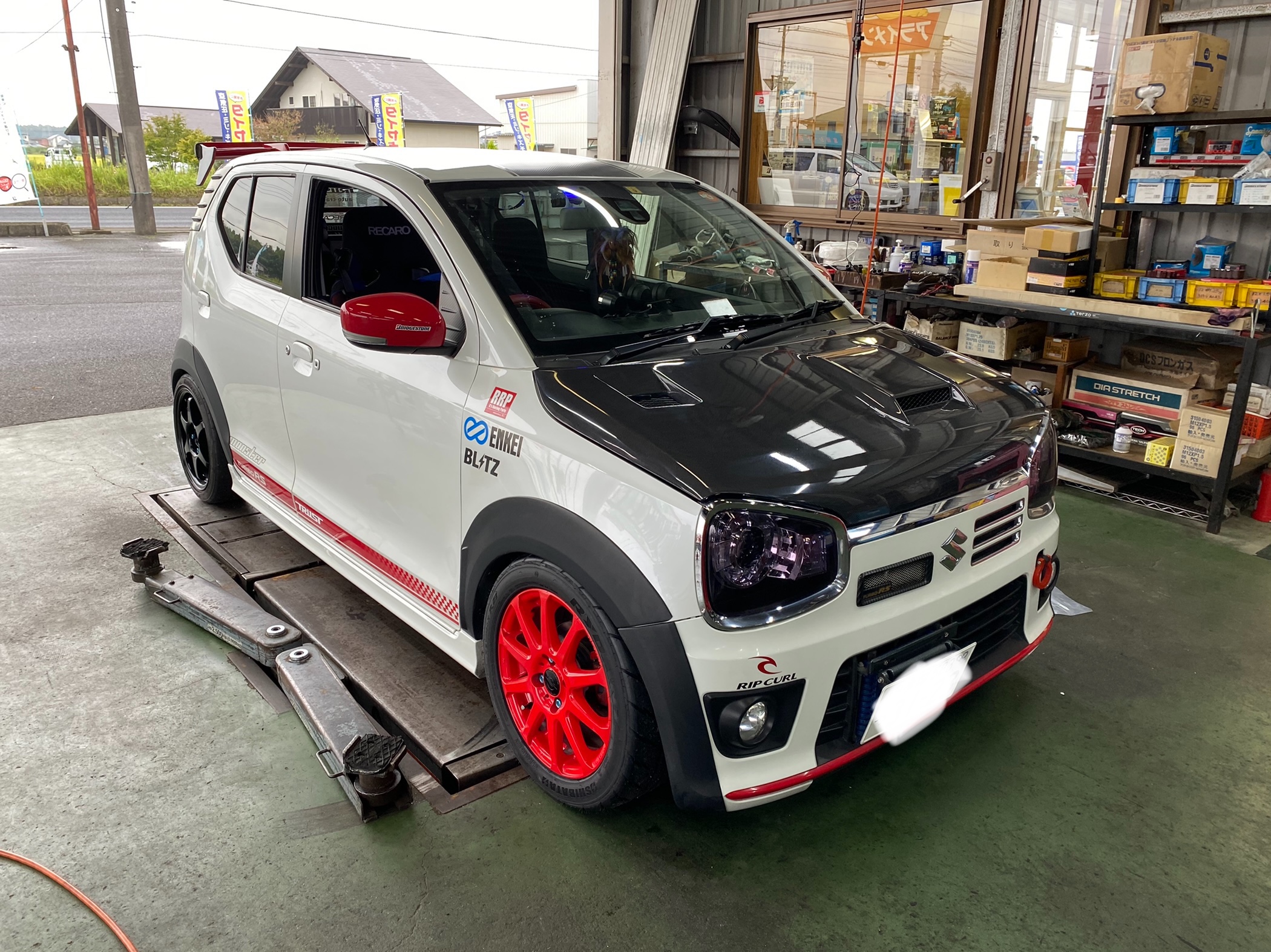 本日は アルト ターボRS ha36sにアールズカーボンボンネットを取り付け致しました!