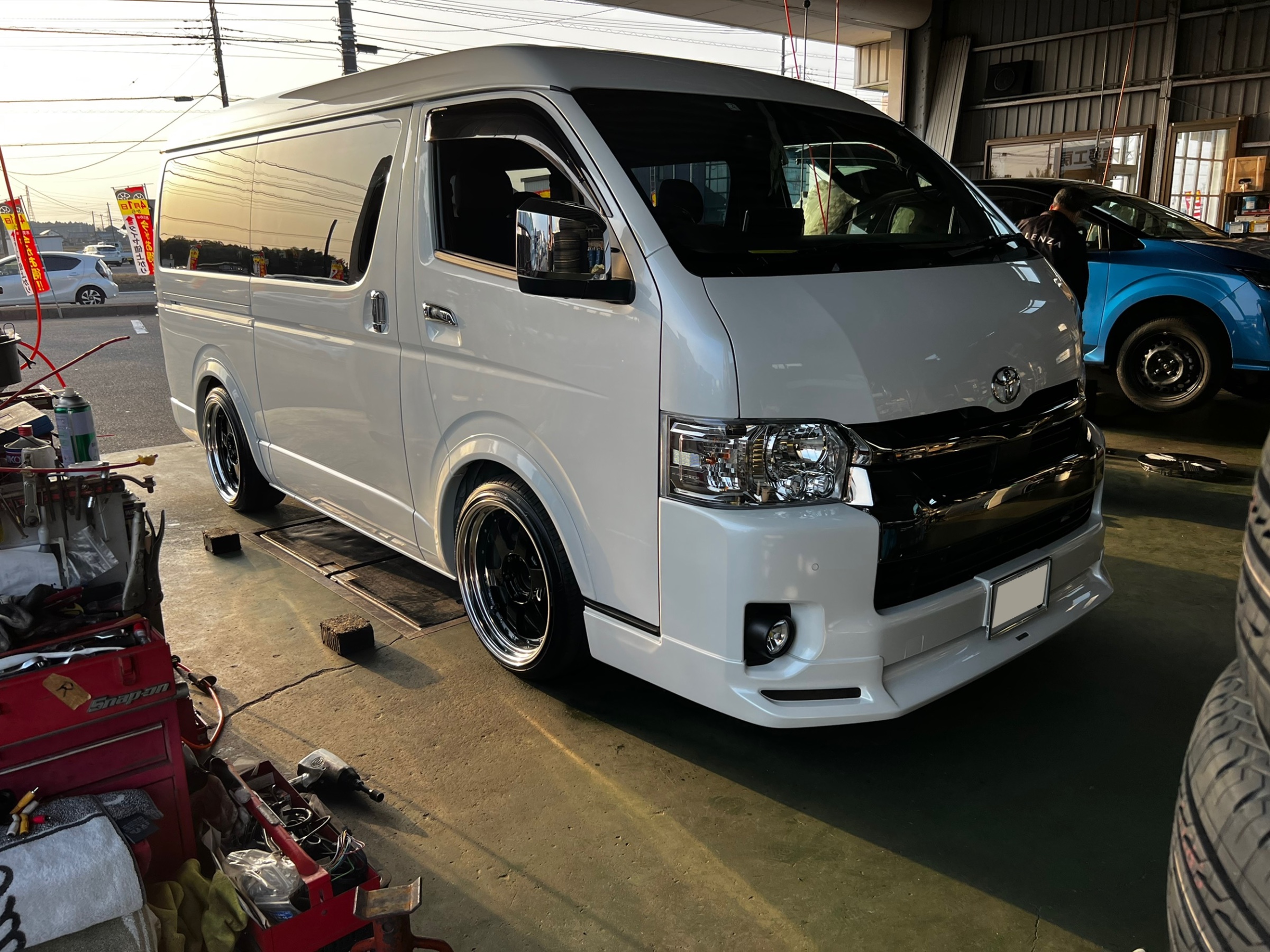 ハイエース カスタム ポスト 2022年3月25日 玄武2.5インチブロック ホイール ファブレス オーバーフェンダー ESSEX リアスポイラー クラッツィオ シートカバー スフィアライト LED 各部 ありがとうございました! 担当:沼田