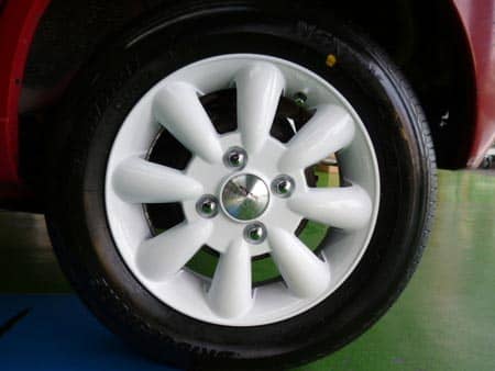 一般的な軽自動車の純正ホイールと同じサイズで白いカラーリングが