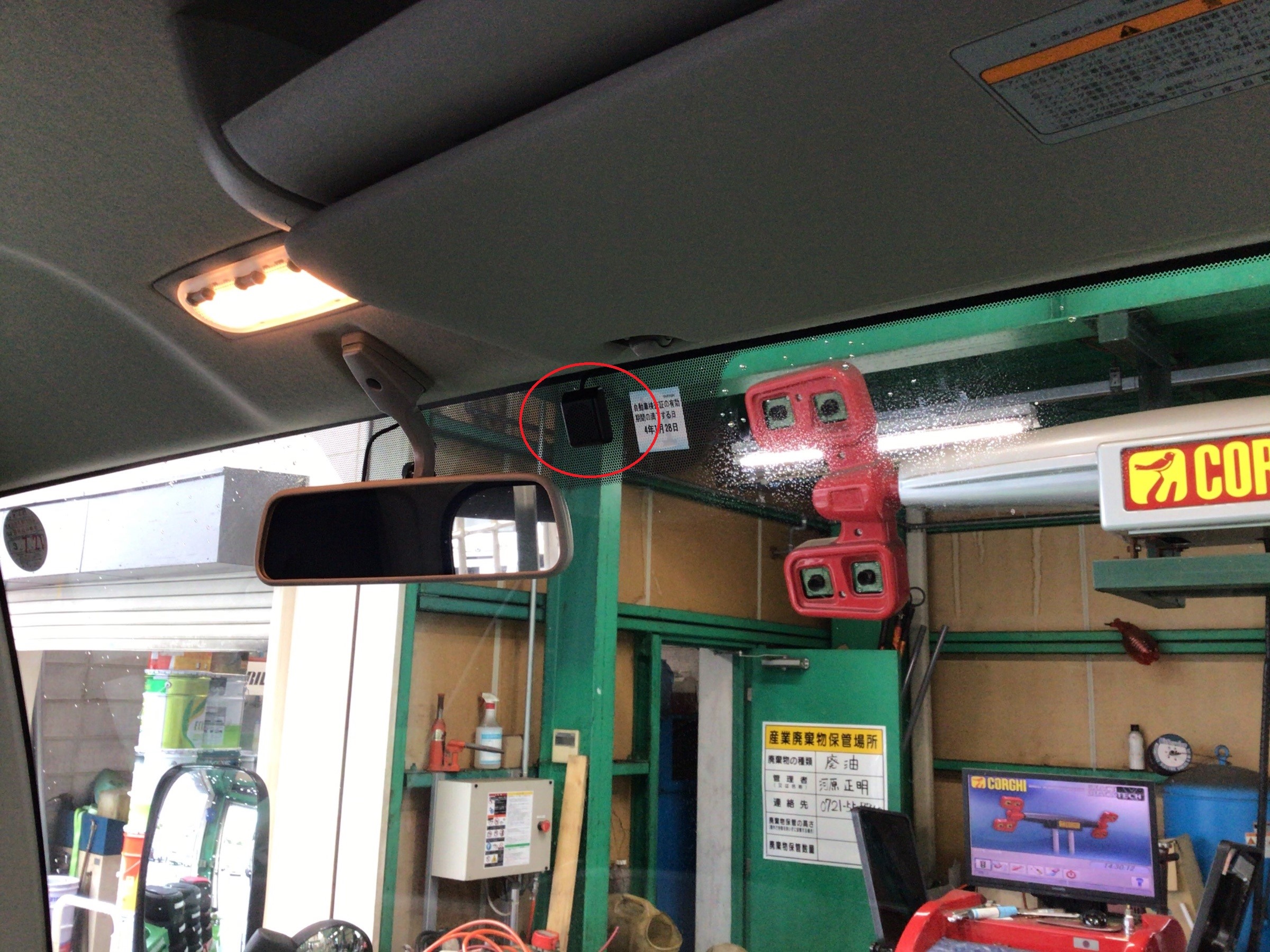 フロントガラス上部に(車検適合範囲内)スッキリ貼り付け。