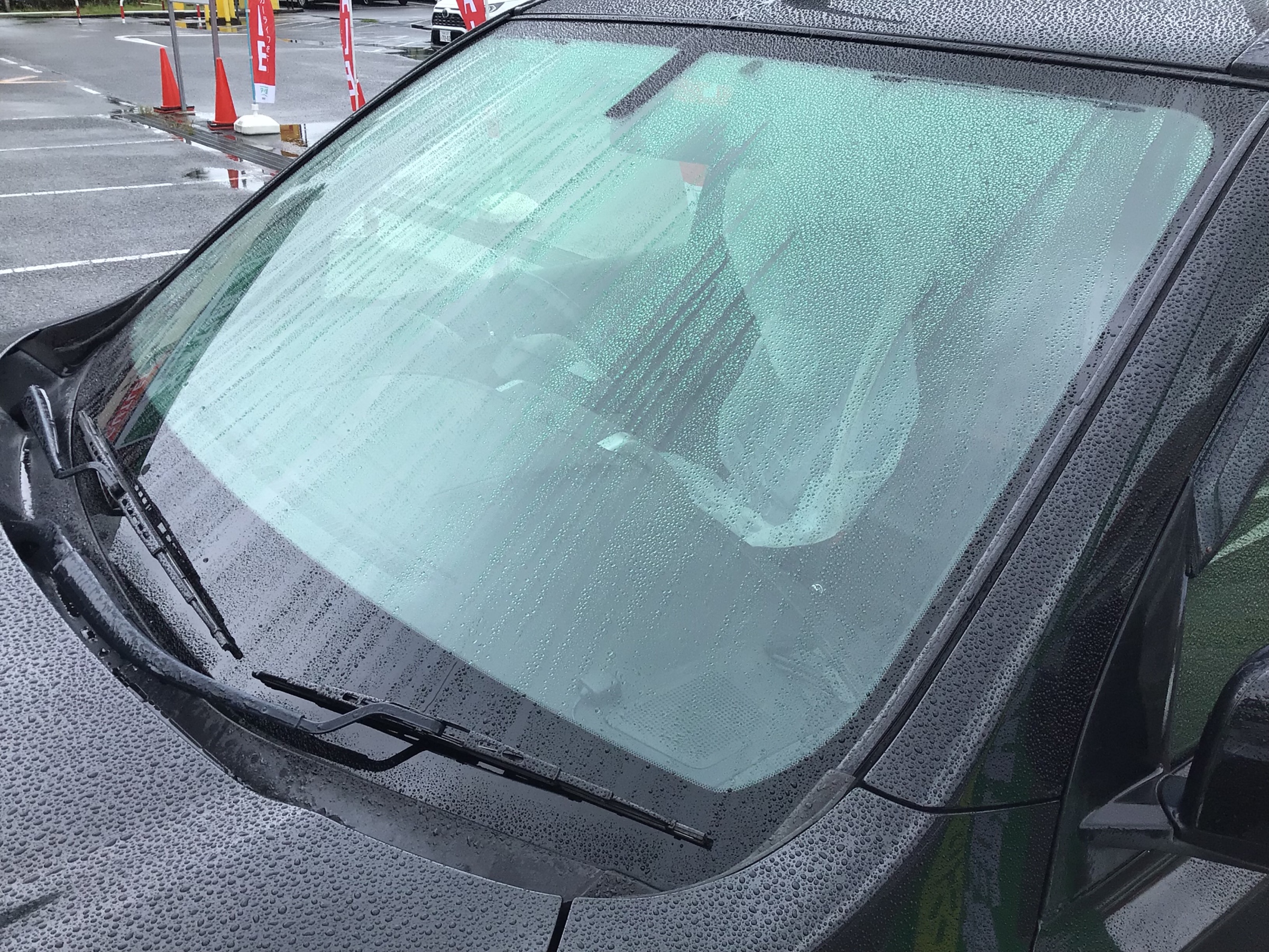 撥水加工を実施すると、視界もよくなりより安全に走行出来ますよ。