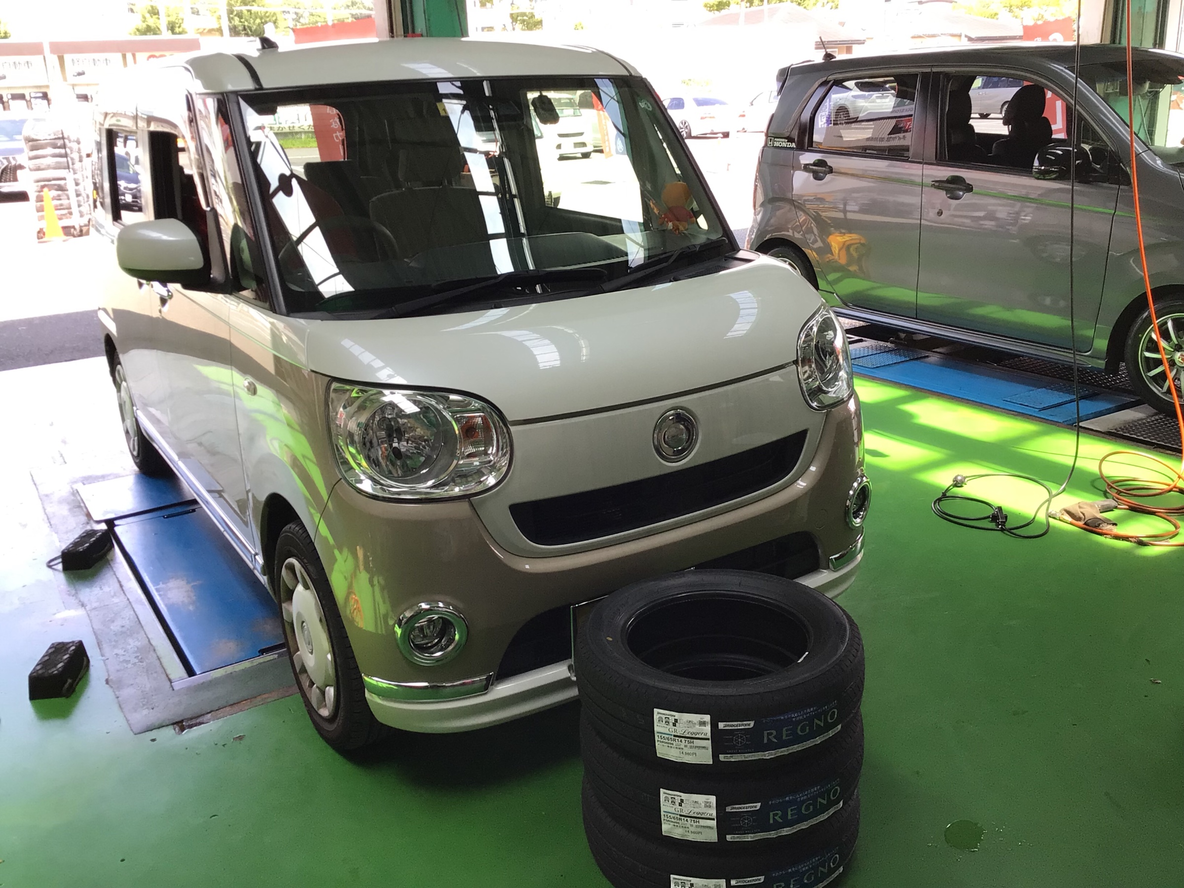 【ダイハツ:ムーヴキャンバス LA800系 】 タイヤ交換おまかせください!! ポスト 2021年7月16日 いつもタイヤ館 河内長野のホームページをご覧いただきありがとうございます! 本日のご紹介は< ダイハツ ムーヴキャンバス >です!! 作業内容は【 タイヤ交換 】です★ 今回お選びいただいたタイヤは 【 ブリヂストン REGNO GR -Leggera 】 (レグノ ジーアール・レジェーラ) タイヤサイズは、155/65R14 ブリヂストンのレグノを軽自動車にも!! 快適性に優れており、ふらつきを抑制し乗り心地も良いタイヤとなります。 今回のムーヴキャンバスやN-BOX等に人気の商品です。 ウェット性能が良いタイヤがご希望との事でしたので、 おススメさせて頂きました。 詳しくはこちらをクリック!! 河内長野市 富田林市 大阪狭山市 橋本市で ムーヴキャンバスや他の軽自動車 (N-BOX ワゴンR デイズルークス 等) のタイヤ交換をご検討の方は ぜひタイヤ館河内長野へお越しください!! タイヤ館河内長野は、河内長野市西之山町のロイヤルホームセンターの 大型駐車場内に御座います。 安全点検やボンネット内の安全点検など無料で実施しております。 お近くにお寄りの際はぜひお立ち寄りくださいね。 「夏の大総力祭!」は大好評!!開催中です。 期間は6月25日(金)~8月1日(日)までですよ。 また、新型コロナウイルス感染症拡大防止の為、 電話でのご相談も随時受け付けております、お気軽にご相談ください。 よろしくお願いいたします。 タイヤ館 河内長野の電話番号コチラ⇒0721-55-7710 カテゴリ:タイヤ関連 担当:尾形