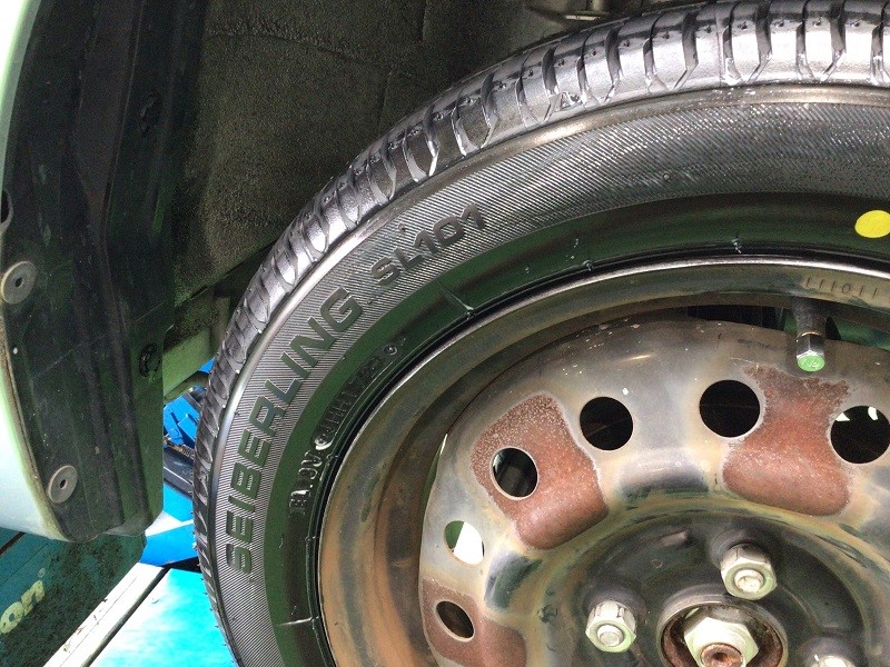 交換前のタイヤを見てみると・・・年数も経っておりひび割れが・・・(汗)