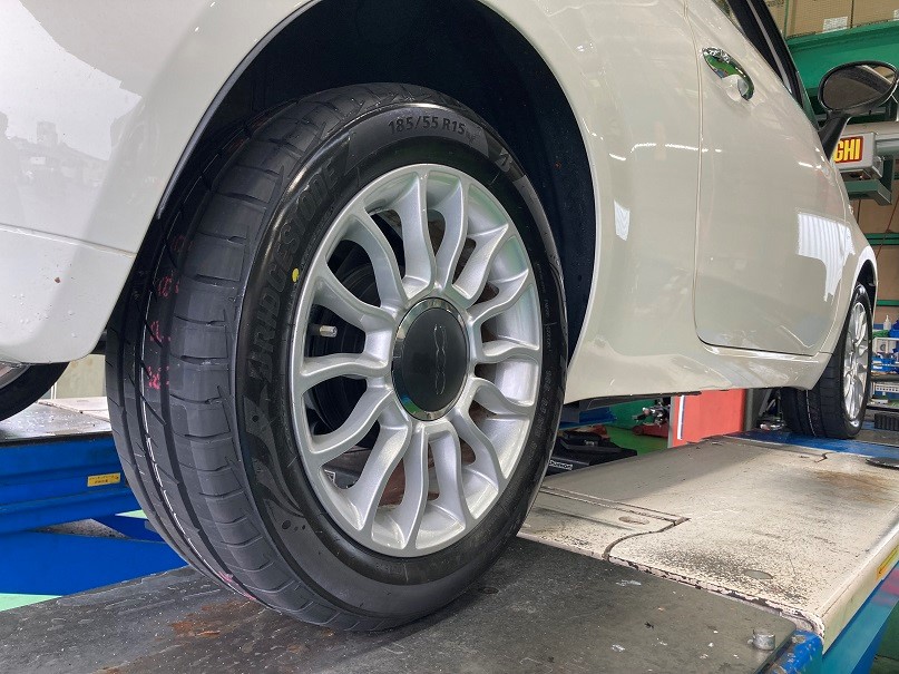フィアット 500 【 タイヤ交換 】作業紹介♪♪ タイヤに選びはタイヤ館 河内長野にお任せください!