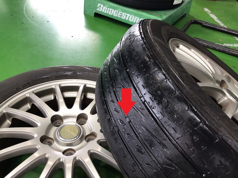 交換前のタイヤなんですが、スリップサインまであと少しの状態になってました。