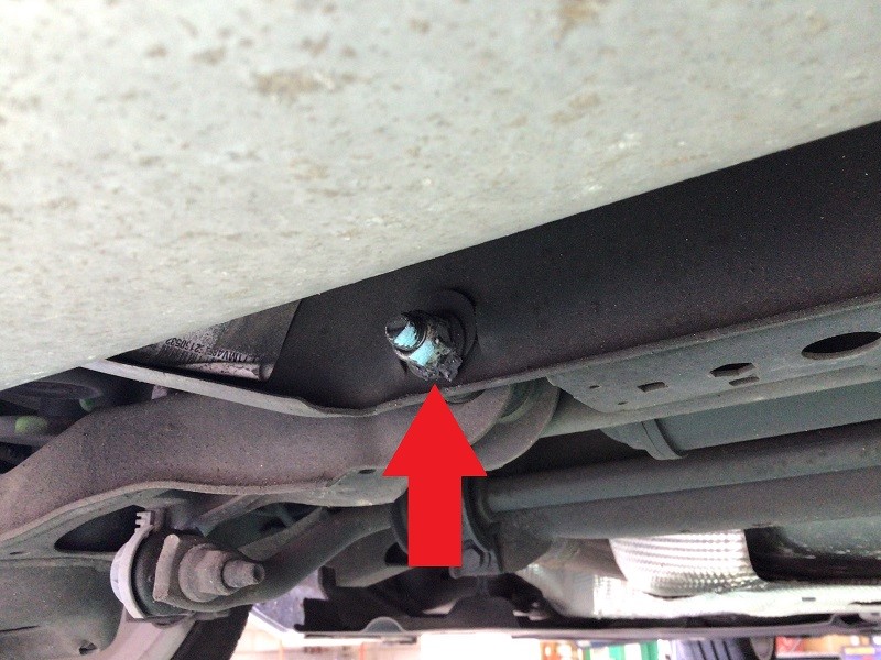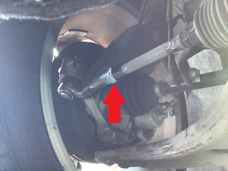 フロントはタイロッドエンドでの調整(矢印の場所)