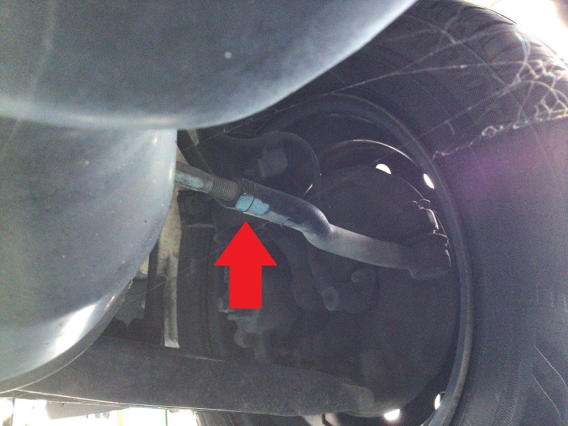 フロントはタイロッドエンドでの調整(矢印の場所)