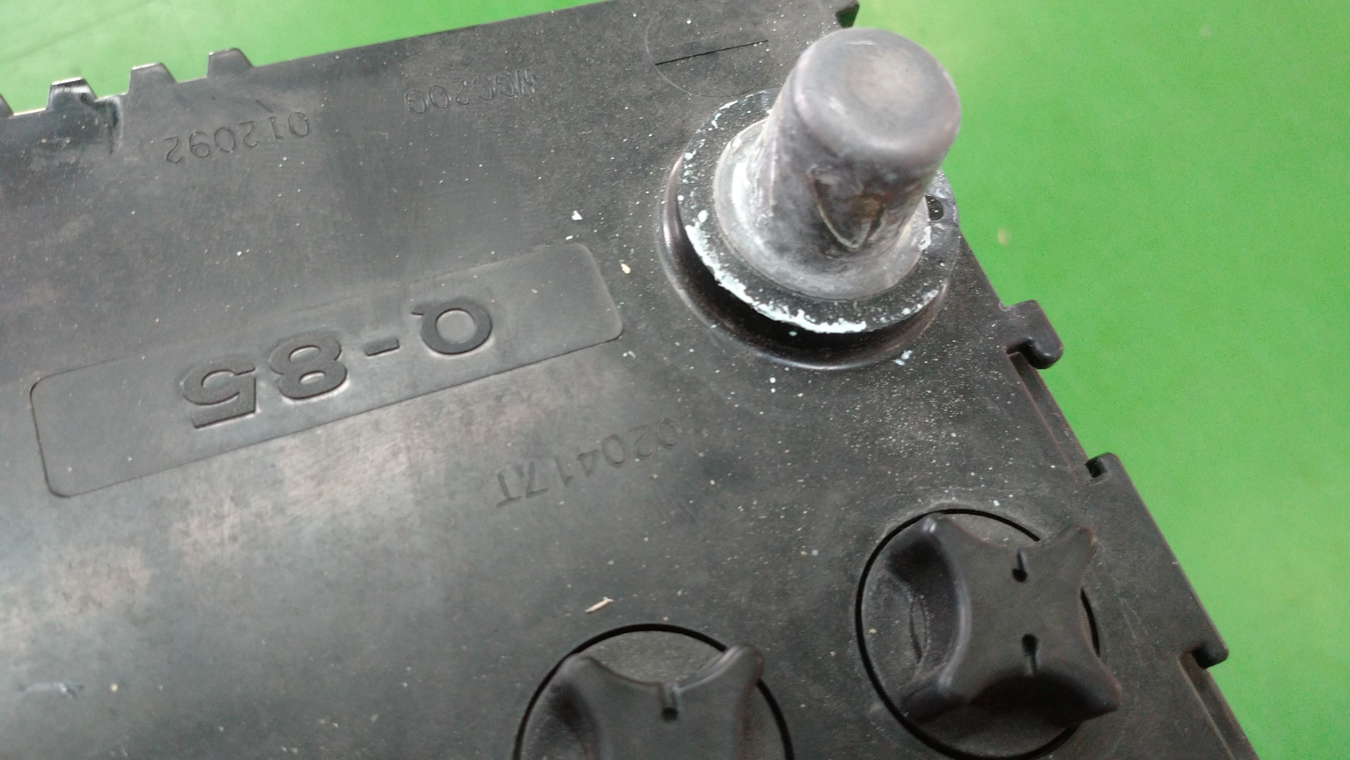 この粉の正体はバッテリー液!バッテリー液が漏れ出て固まった物がこの粉なのです!('Д')
