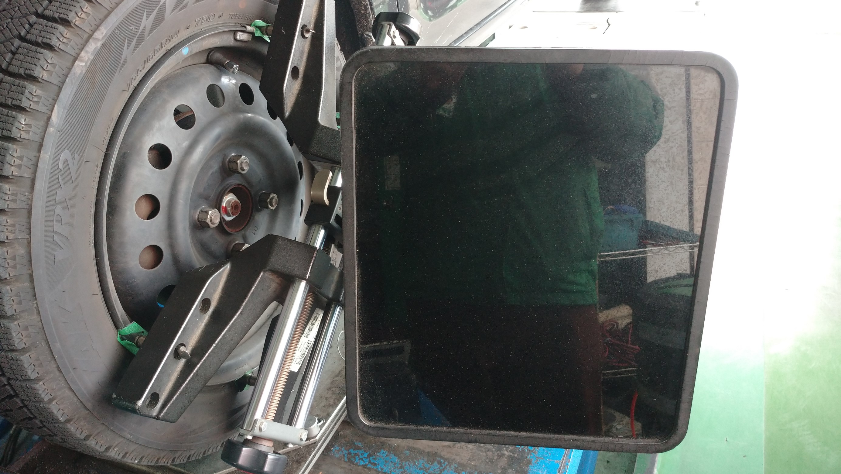まずはアライメント調整!タイヤの取り付け角度を適正にする事でタイヤの性能をよりしっかり発揮できるように!タイヤ本来の寿命通り使えたり、お車の特に足回り部品への負担低減も期待できます!(^^)!