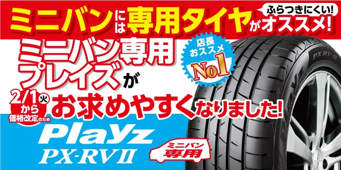 ミニバン専用タイヤ『プレイズ PX-RVⅡ』がお求めやすくなっています!