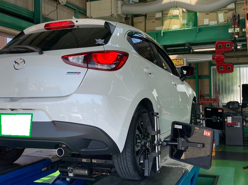 マツダ デミオ【 タイヤ交換 & アライメント測定 & ヘッドライトコーティング 】作業紹介♪♪