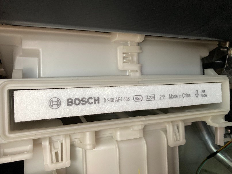 最後に新しいエアコンフィルターを装着して作業完了です☆