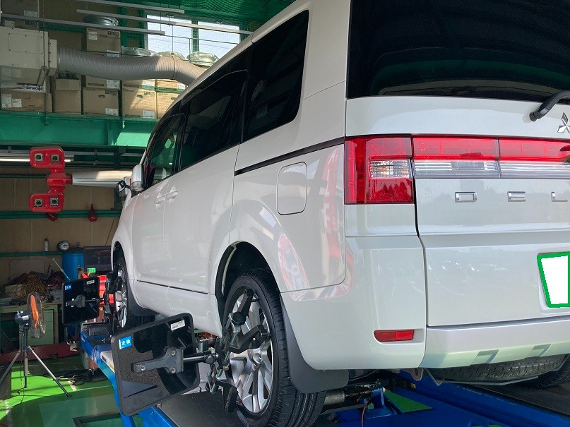 ミツビシ デリカD:5【 タイヤ交換 & アライメント測定・調整 】作業紹介♪♪ お買い得タイヤもご用意しております!!