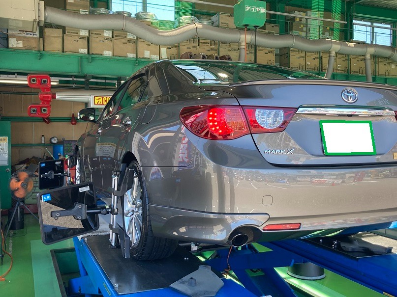 トヨタ マークX【 タイヤ交換 & アライメント測定・調整 】作業紹介♪♪ ポテンザシリーズはタイヤ館にお任せください!!