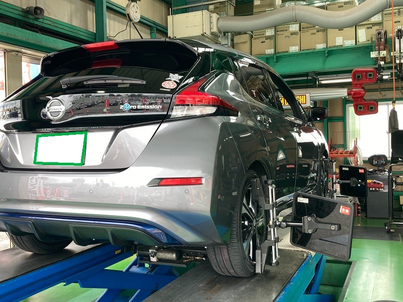 日産 リーフ【 タイヤ交換 & アライメント測定・調整 】作業紹介♪♪ タイヤ交換はお任せください!!