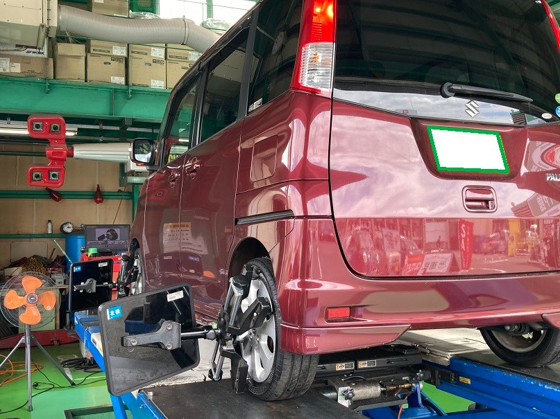 スズキ パレット【 タイヤ交換 & アライメント測定・調整 】作業紹介♪♪ 軽自動車のタイヤ選びはお任せください!!