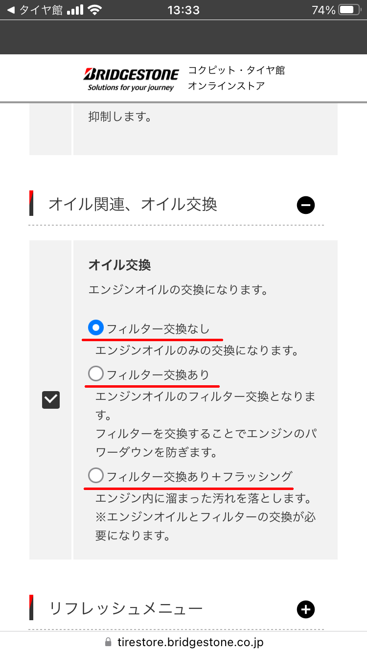 ステップ6.オイル交換の作業詳細が出てくるので、いずれかをお選びください(赤下線の個所)