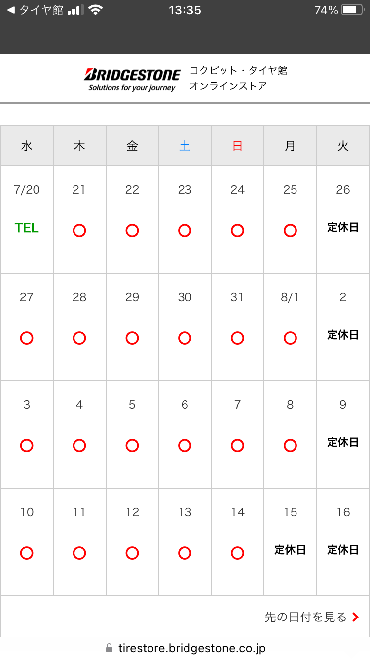 ステップ7.カレンダーが出てきて予約可能な日にちが赤丸の個所なので
