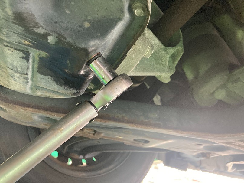 ドレンボルト用のトルクレンチで確実にドレンボルトを締め付けします☆