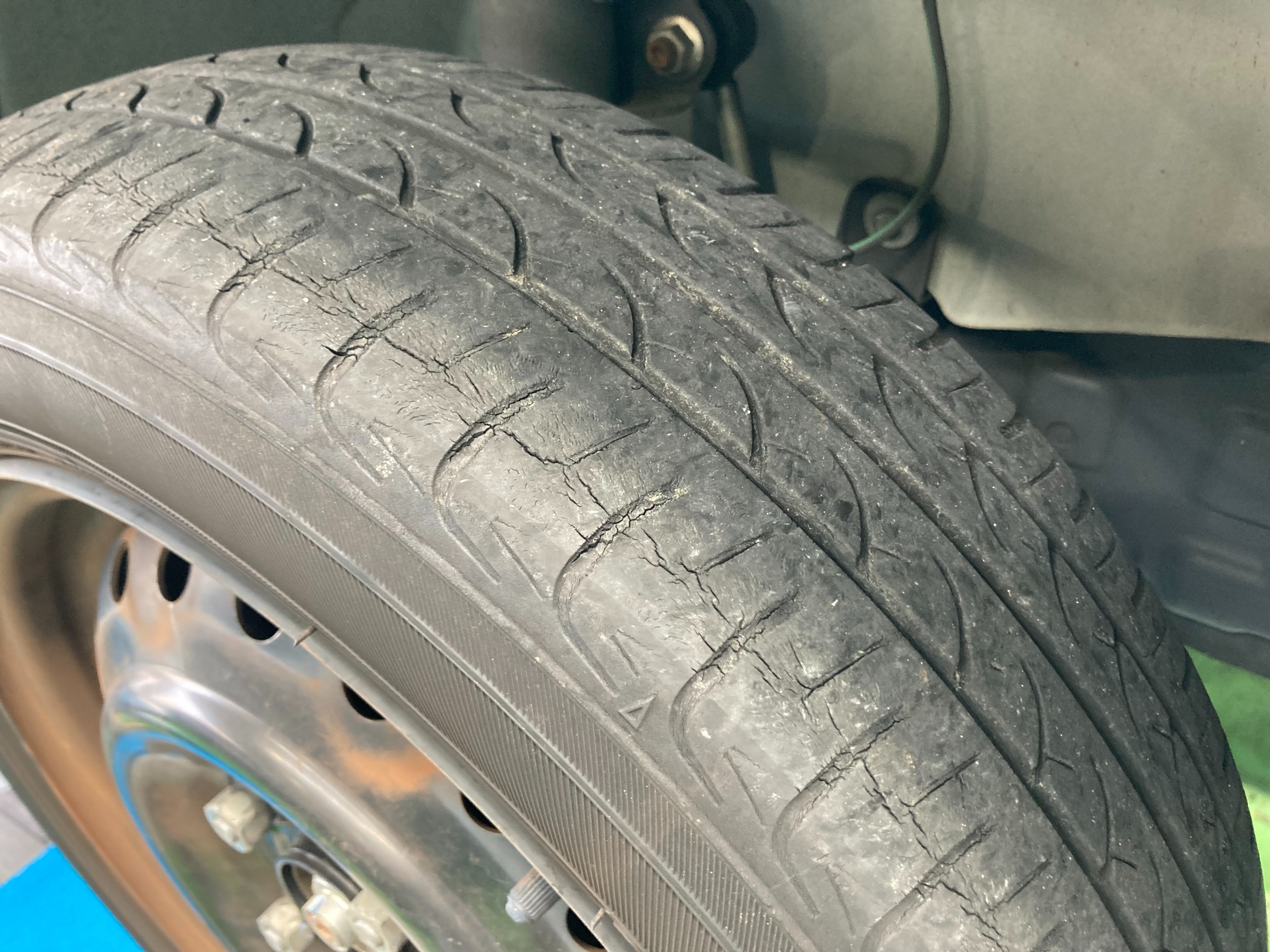 装着されていたタイヤが劣化による大きなヒビ割れが