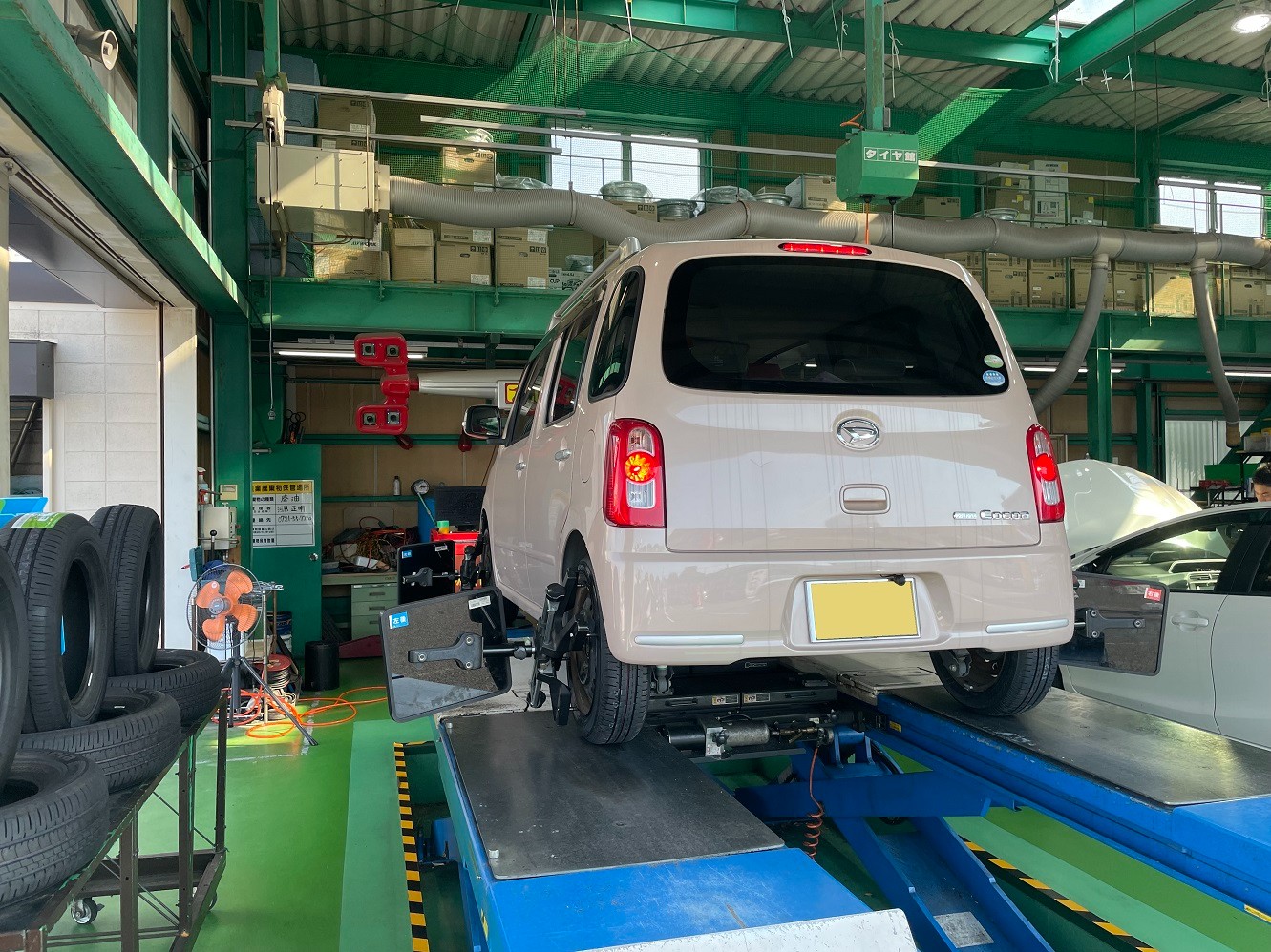 ダイハツ ミラココア【 タイヤ交換 & アライメント測定 】作業紹介です♪♪