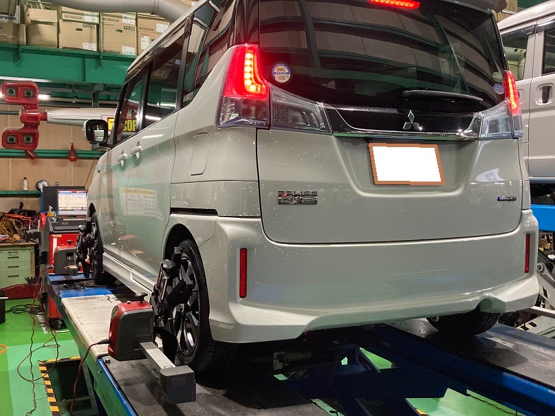 ミツビシ デリカD:2【 タイヤ交換 & アライメント測定・調整 】作業紹介♪♪ 低燃費タイヤもブリヂストンにお任せください!