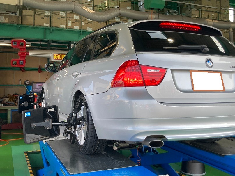 BMW 3ツーリング【 タイヤ交換 & アライメント測定・調整 】作業紹介♪♪ 外車・輸入車のタイヤ交換もお任せください!!