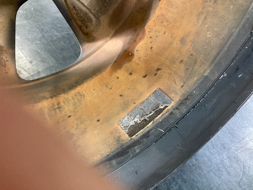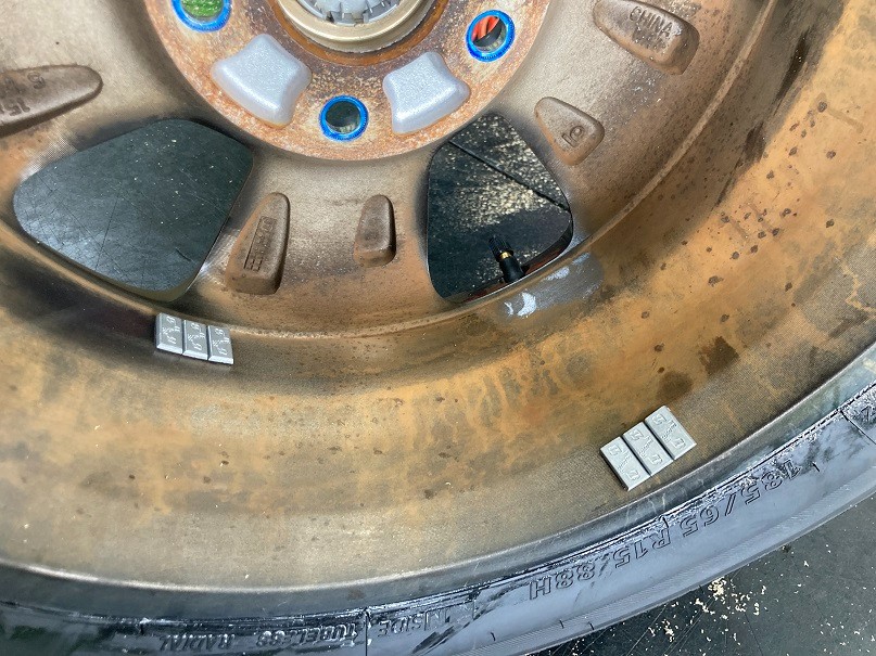 タイヤ交換後に新しくバランスウエイトを張り付けする際に