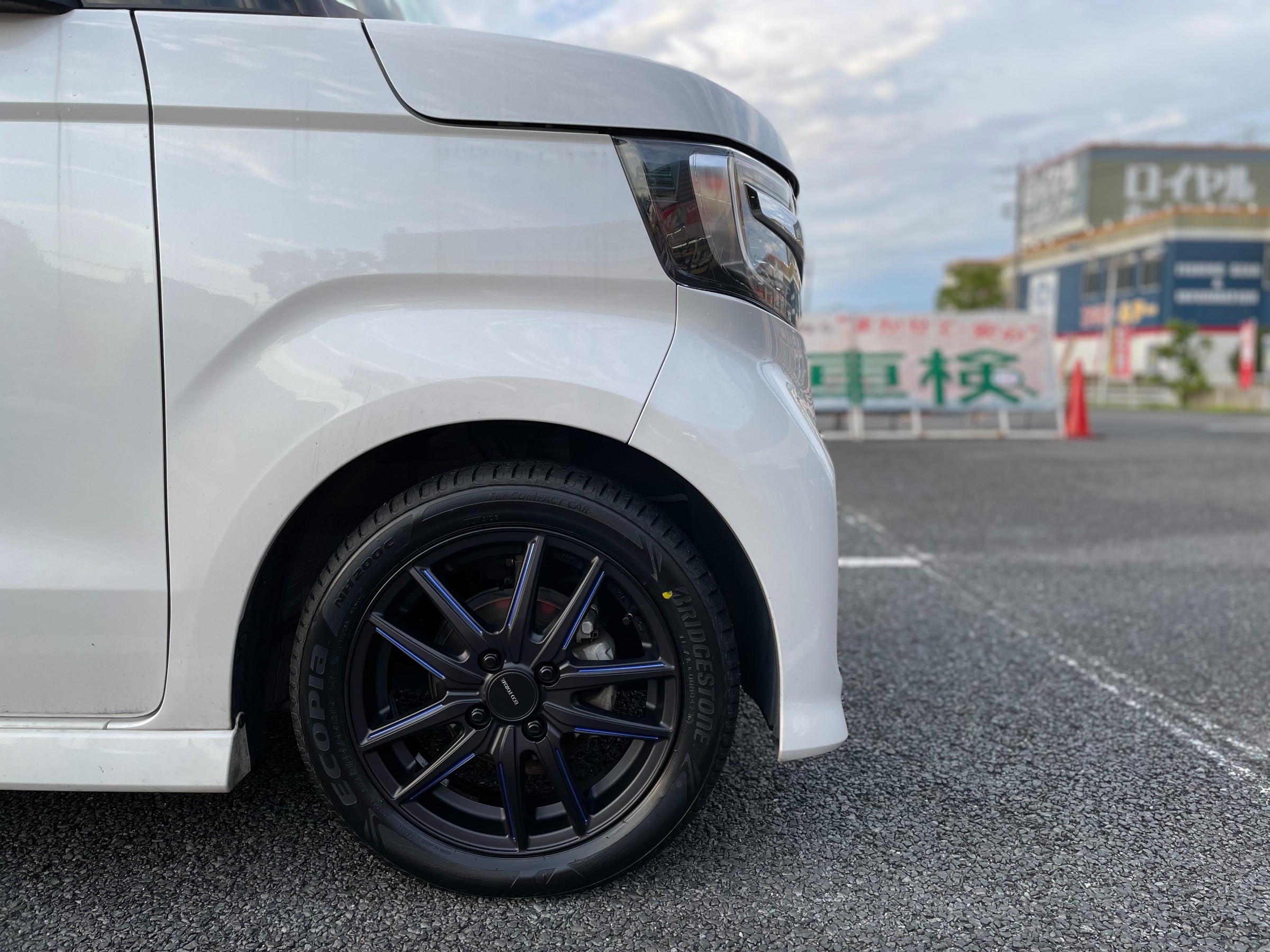 ホンダ N-BOX CUSTOM【 タイヤ+アルミホイールセット取り付け 】タイヤ交換時にドレスアップです♪