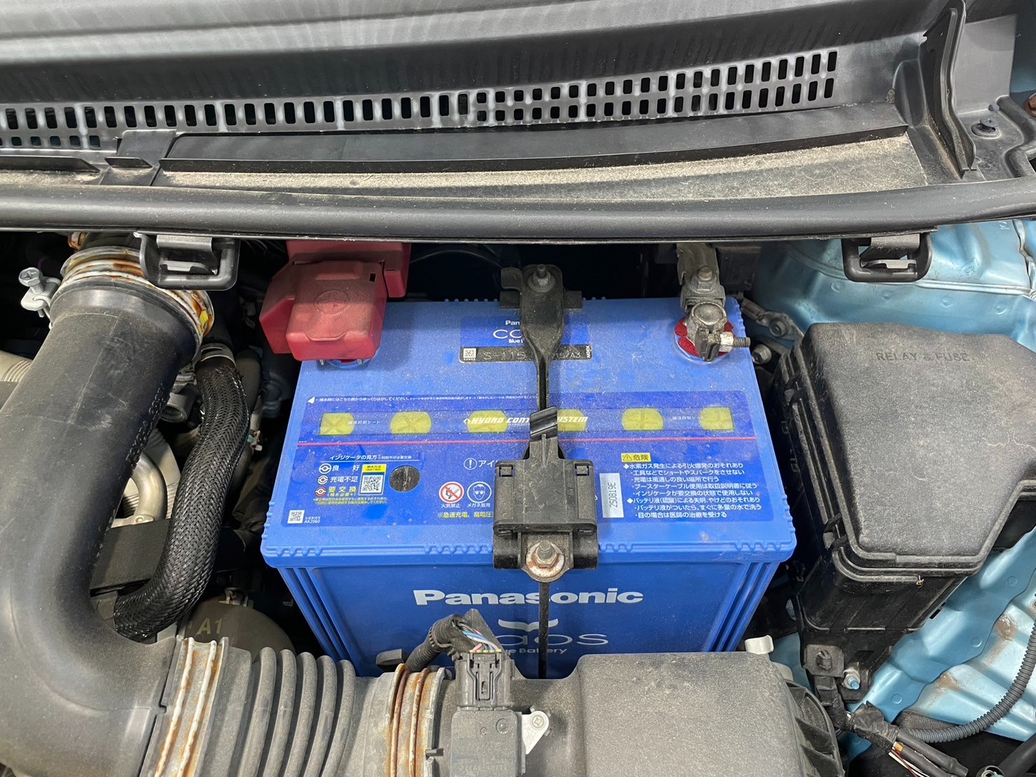 こちらの車両はボンネット内助手席側にバッテリーが搭載されています