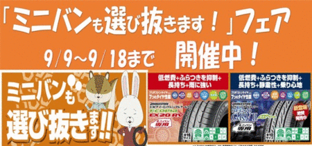 イベント期間中、ブリヂストンのミニバン専用タイヤ4本お買上で、