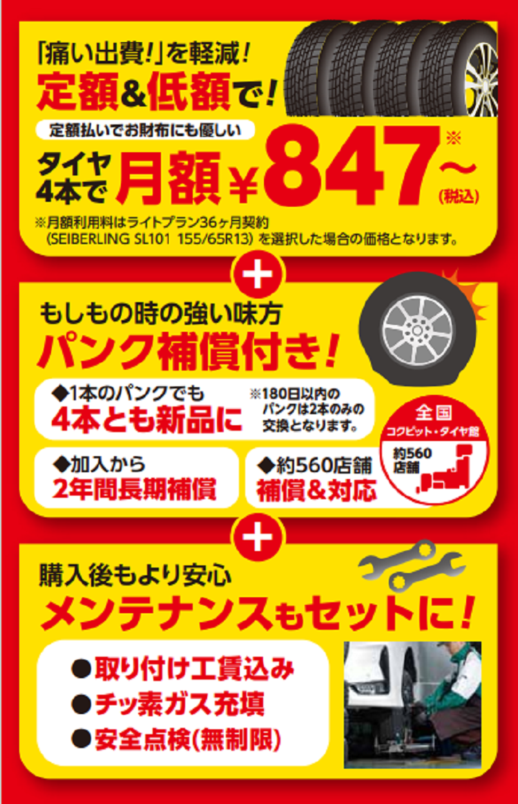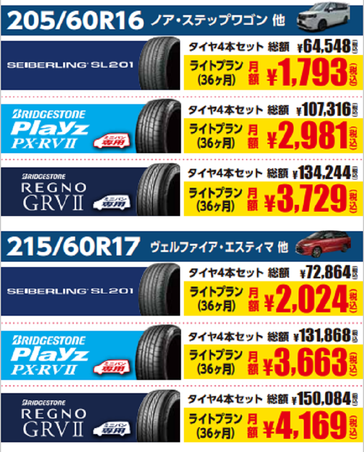 タイヤのサブスク月額847円(税込)~ 【ミニバン】