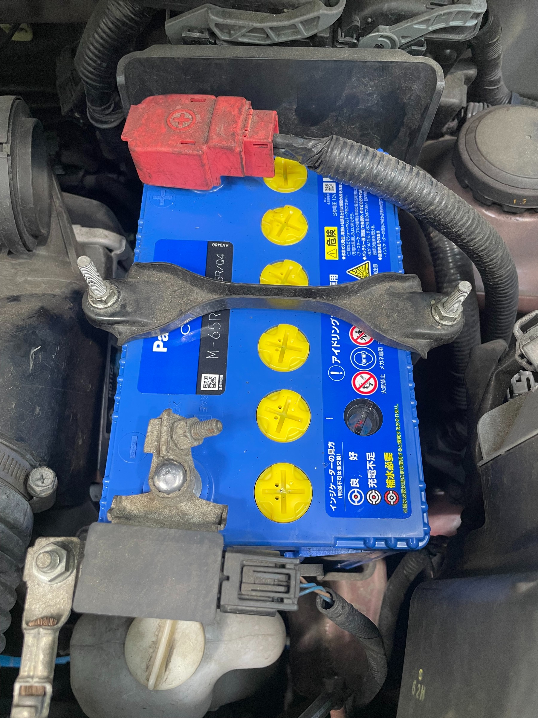こちらの車両はボンネット内、助手席側にバッテリーが搭載されています。