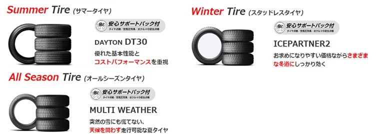 夏タイヤ・スタドレス・オールシーズンタイヤまで