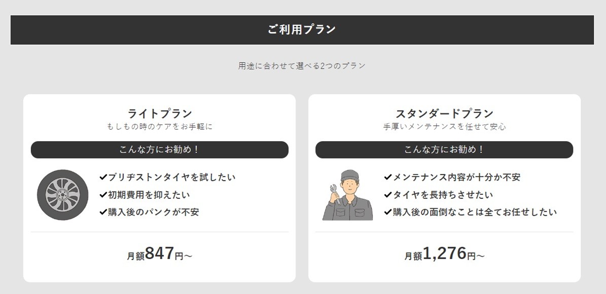 パンク補償やローテションもついているのでメンテナンスも楽々