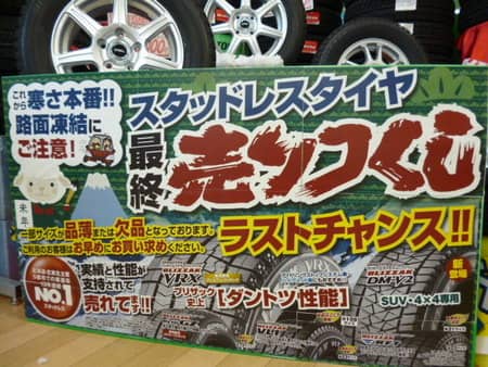 当店では、只今「スタッドレスタイヤ最終売りつくし」