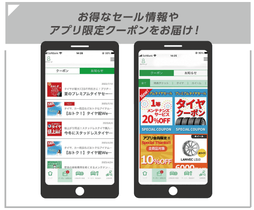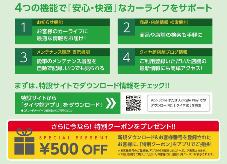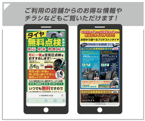 そんな方にお勧めなのがタイヤ館アプリ♪