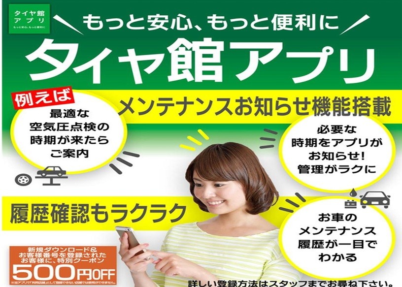本日はおススメのタイヤ館アプリのご紹介です(^0^)/