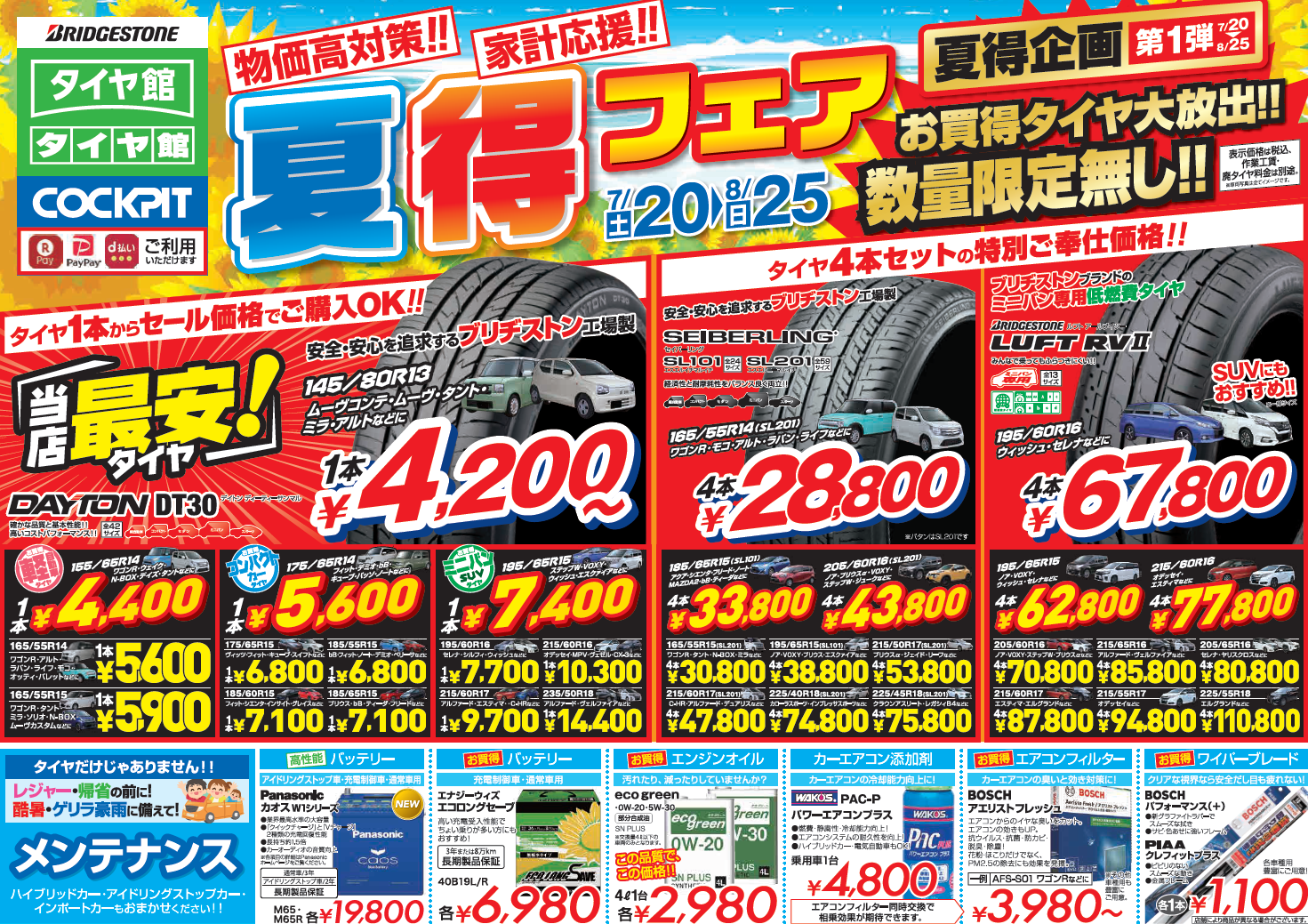 7/20(土)~8/25(日) 緊急セール開催告知!!!!!!!