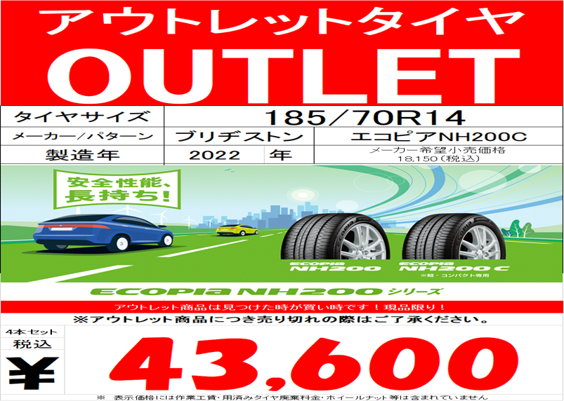 アウトレットタイヤを集めて お買い得価格にて ご提供しています。
