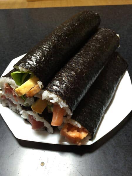 今年の恵方の西南西を向いて、無言で黙々と食べました。